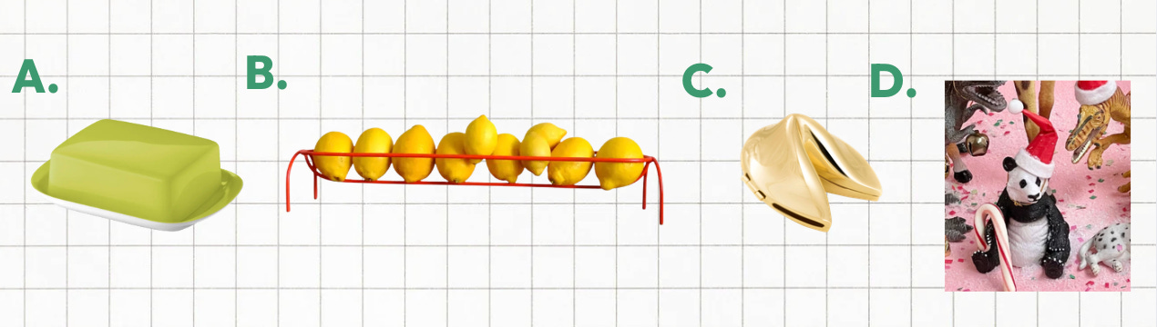 A. Holy moly, butter dishes are having a moment! I collected a few here, but this neon one is my current favorite. As someone whose last meal would be bread and (soft) butter - I’m a fan!