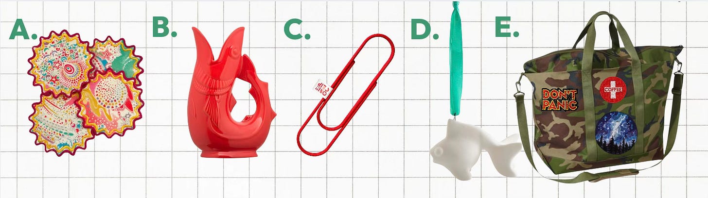 D. This goldfish ornament ($28) charmed me.