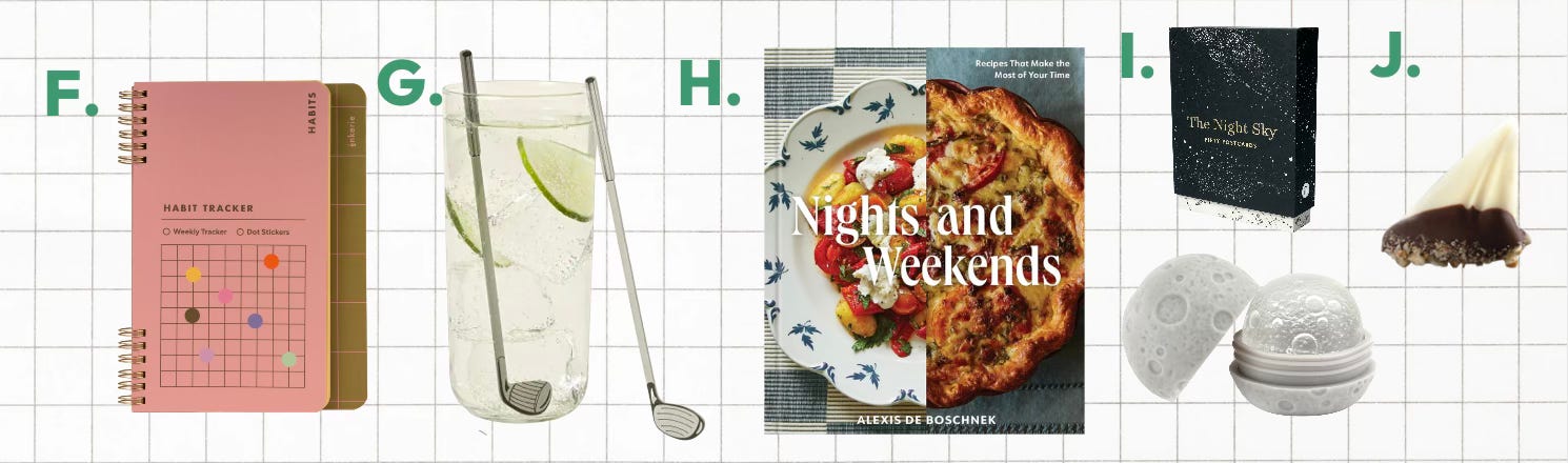 I. These Night Sky postcards are an easy hostess gift, and this Moon Ice Mold would delight my 7-year-old, who is in a big experimental stage where I am constantly finding different items being frozen in our freezer!